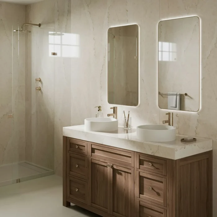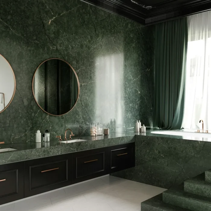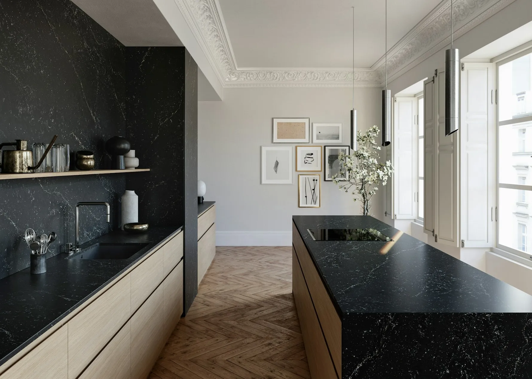 Sustainability and innovation come together in surfaces composed of minerals and recycled materials.